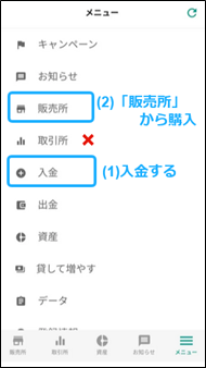 (2)販売所での暗号資産の購入方法